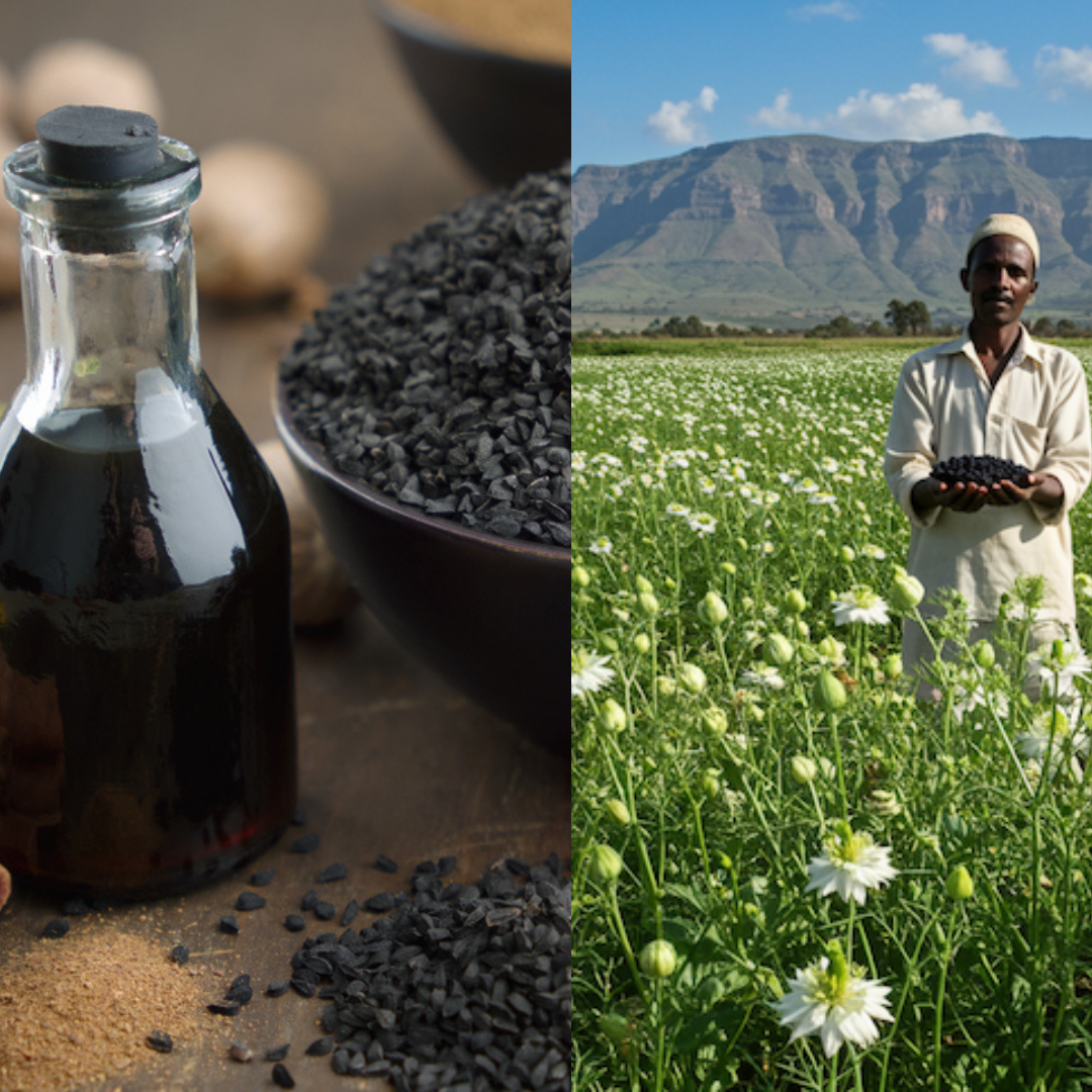 Onze zwarte zaadolie wordt extra koudgeperst uit premium zwarte zaden die groeien op de vruchtbare gronden van Ethiopië.